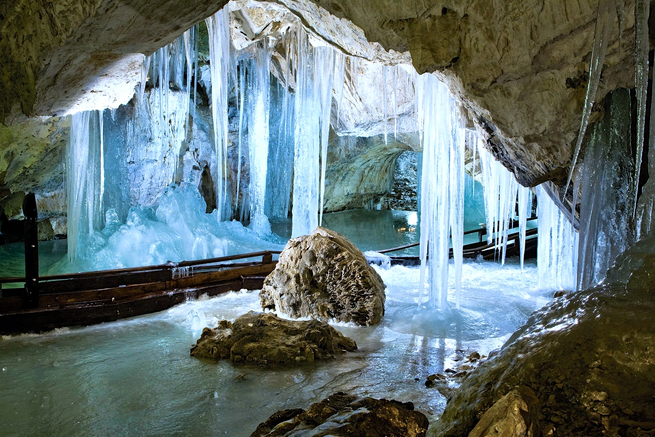 Charakterom zaľadnenia patrí medzi svetové unikáty. Leží totiž mimo alpskej vysokohorskej oblasti a podzemný ľad sa nachádza len vo výške 920 až 950 metrov n. m. Sprístupnili ju v roku 1871 a v roku 1887 ju elektricky osvetlili ako prvú jaskyňu v Európe.