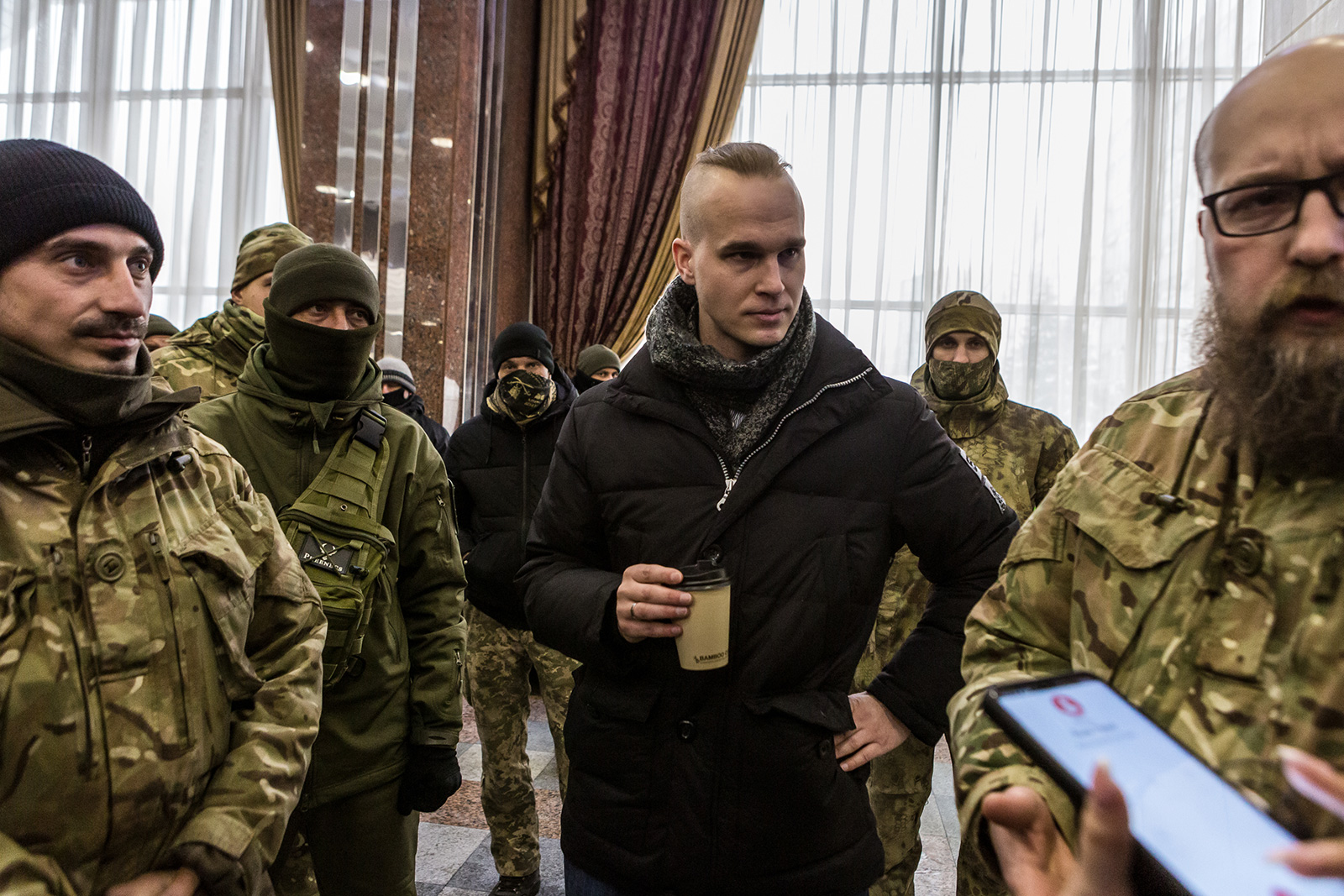 „Všetci rešpektujeme ľudí, ktorí sem prišli bojovať za Ukrajinu,“ povedal ukrajinský obhajca ľudských práv Batryn. „Sme zjednotení v boji za hodnoty, ktoré sme získali po revolúcii, za princípy vytvorené Američanmi.“