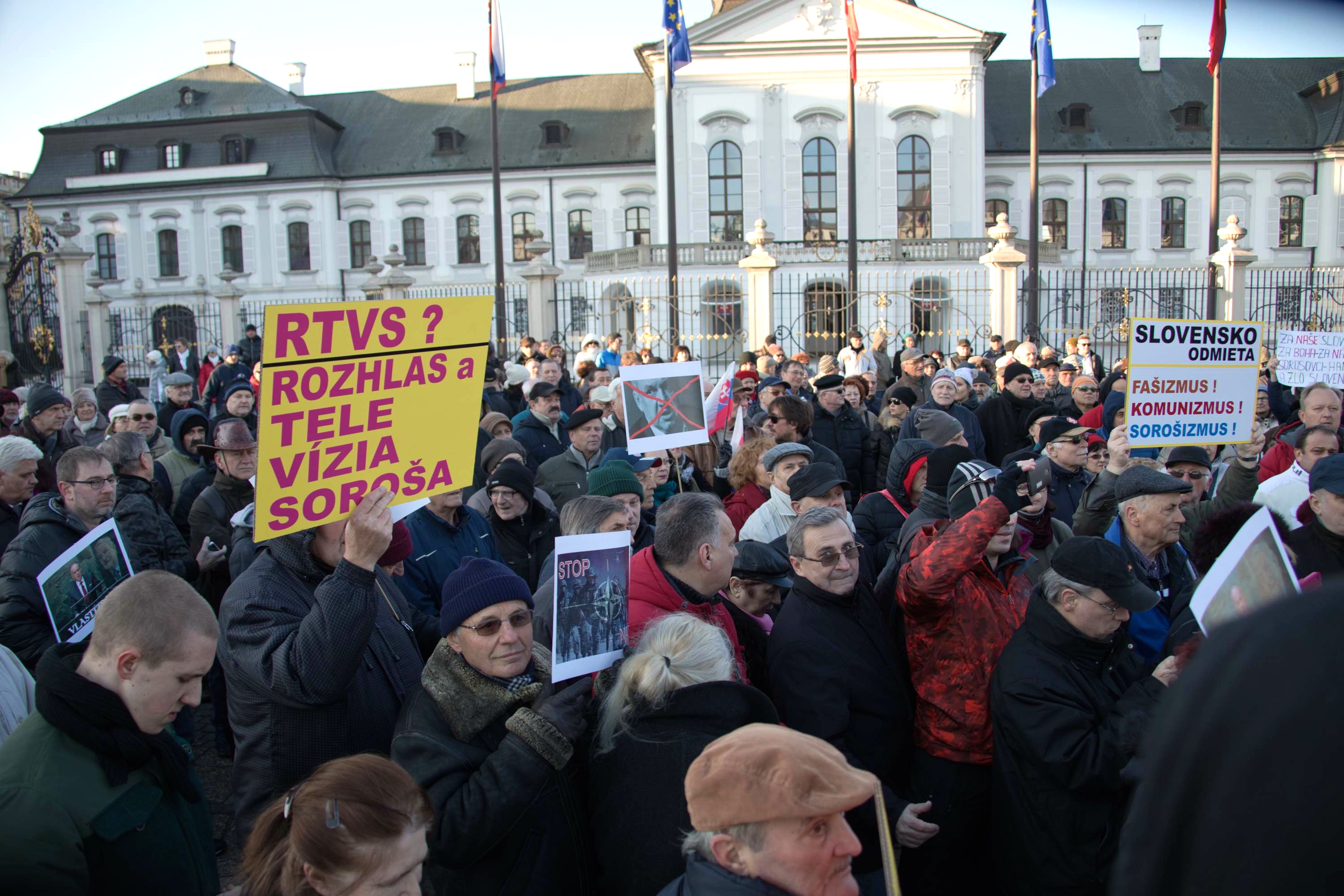 Približne päťsto ľudí sa na bratislavskom Hodžovom námestí, priamo pred Prezidentským palácom, zhromaždilo na mítingu pod názvom „Slovensko si nedáme – nechceme štátny prevrat! Ako uviedol jeden z organizátorov zhromaždenia Rastislav Blaško, cieľom bolo reagovať na súčasnú vyhrotenú vnútropolitickú situáciu.“