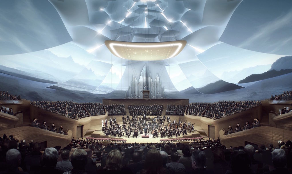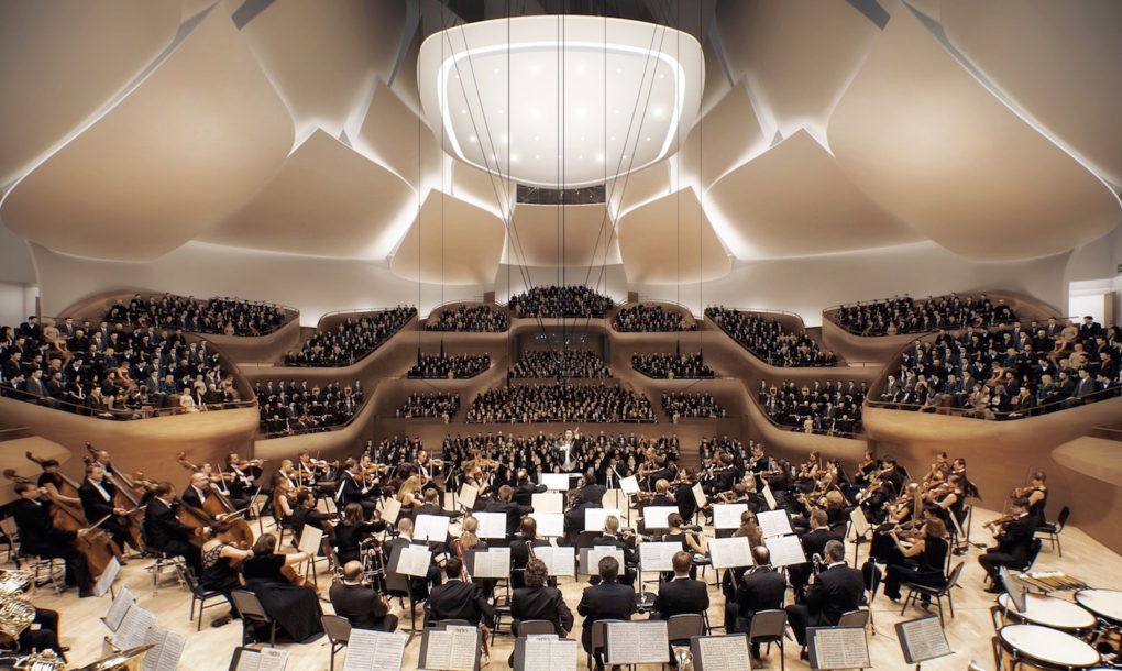 Veľkolepý architektonický skvost vytvorili v spolupráci s expertom na akustiku Yasuhisa Toyota tak, aby budova spĺňala všetky požiadavky pre nový domov Čínskeho filharmonického orchestra. Dizajn budovy má svoje korene vo východnej filozofii a stane sa „novým kultúrnym stánkom pre klasickú hudbu“.