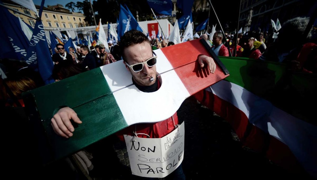 Situácia Talianska sa však postupne zhoršovala. Veľkosť ekonomiky je v súčasnosti stále o 7 percent menšia než pred finančnou krízou v roku 2008 a miera nezamestnanosti mladých sa pohybuje okolo 40 percent. Výsledok sa dostavil: podľa decembrového prieskumu Európskej komisie považuje euro za „dobrú vec“ len 41 percent Talianov. Až 47 percent opýtaných ho označilo „za nie dobré pre Taliansko“. Toho sa chytili aj viaceré politické strany, pričom najostrejšie proti euru vystupuje krajne pravicová Liga Severu.