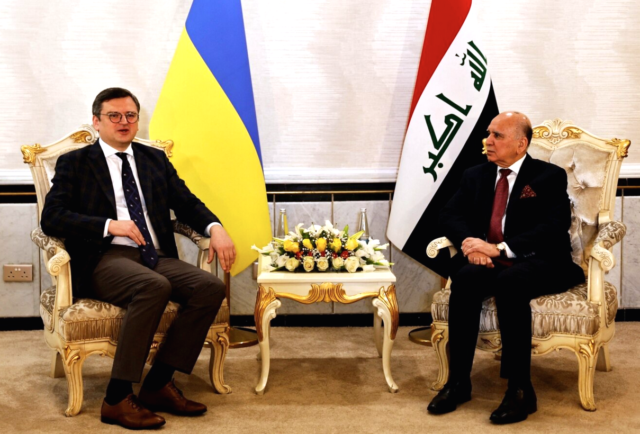 V Bagdade sa Kuleba stretol s irackým rezortným kolegom Fuádom Husajnom. Ten poukázal na dlhoročné skúsenosti Iraku s vojnou a konfliktmi, ako aj s organizovaním rokovaní medzi znepriatelenými stranami.