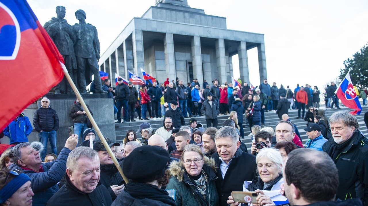 Šéf opozičného Smeru-SD Robert Fico v prejave na zhromaždení za mier na bratislavskom vojenskom pamätníku Slavín vyzval Európsku úniu, aby sa stala mierotvorcom na vojnou zasiahnutej Ukrajine. Poukázal na to, že dnes sa medzi sebou zabíjajú dva slovanské národy a 500-miliónová únia má podľa neho schopnosť nastoliť prímerie.