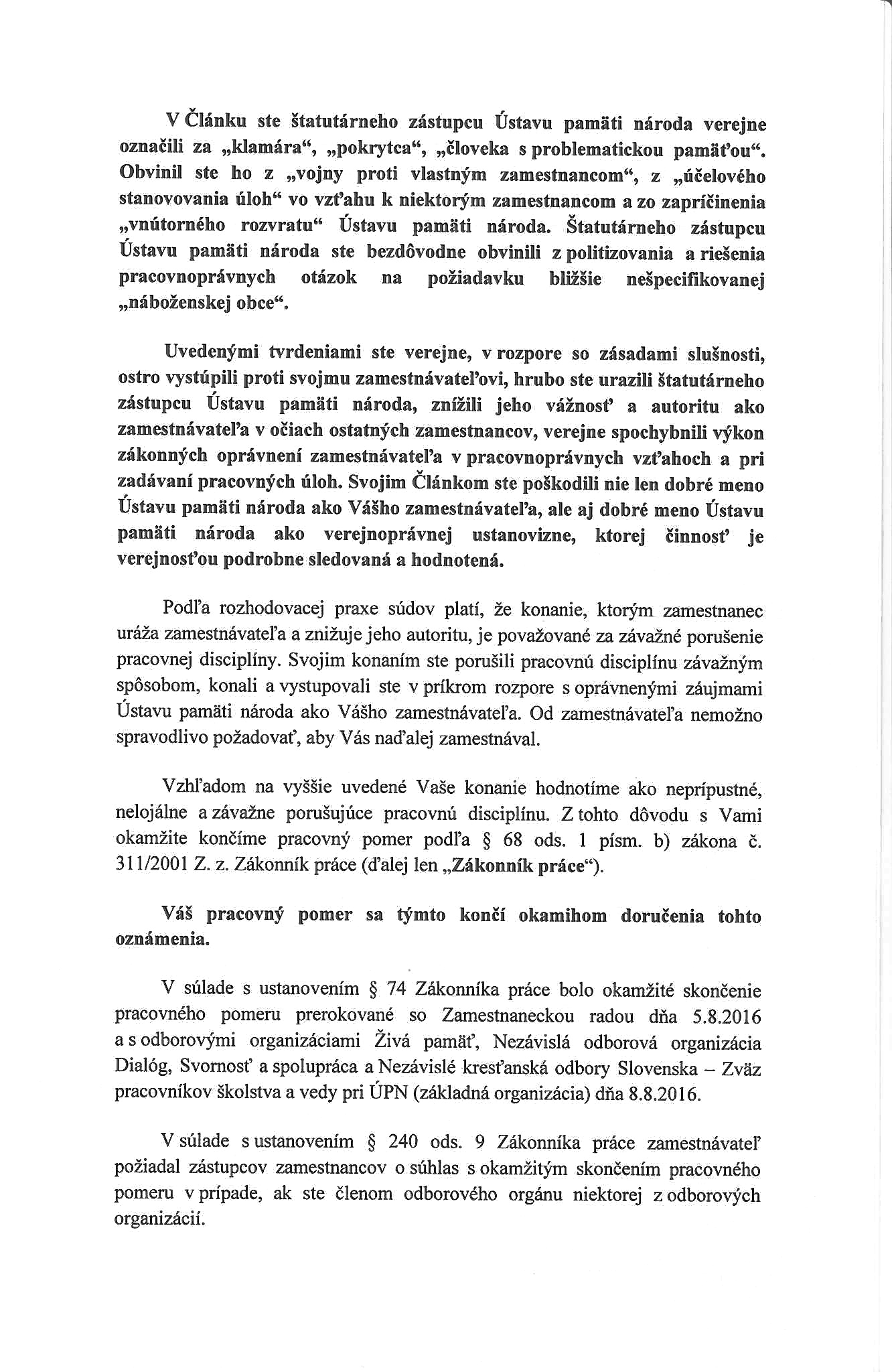 (Stanovisko bývalého podpredsedu Národnej rady SR Prof. Augustína Mariána Húsku k odvolaniu historika Martina Lacka, ktoré sa objavilo na Facebooku)