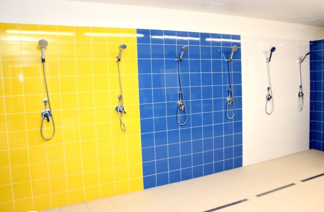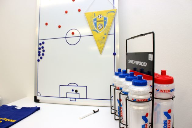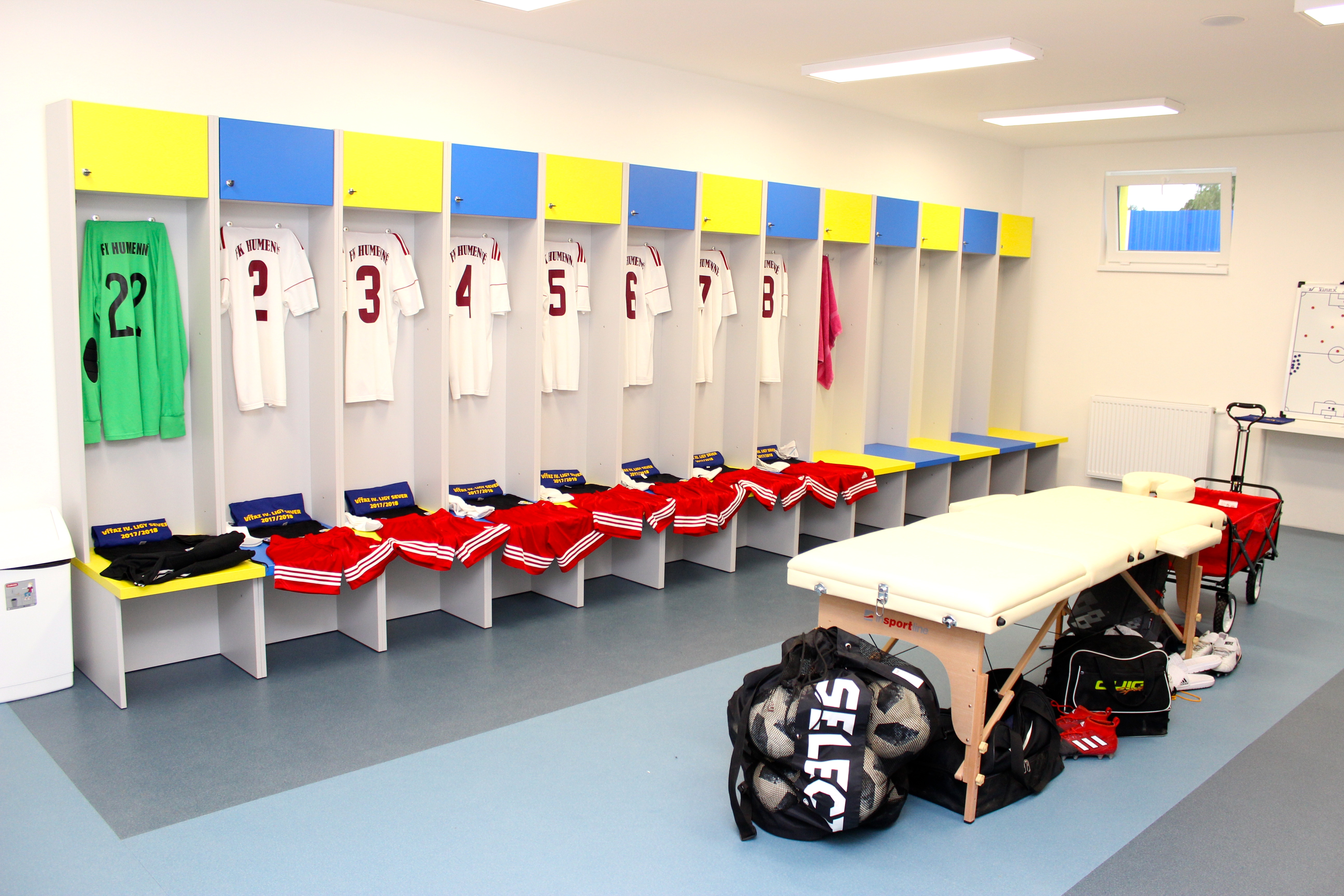 “Všetko je postavené v zmysle smerníc SFZ tak, aby štadión dostal licenciu kategórie 2. Na prízemí sa nachádza šatňa domácich hráčov s miestnosťou pre trénera a šatňa hostí. Ďalej je tam antidopingová miestnosť, miestnosti pre prvú pomoc, delegáta a pre rozhodcov. Šatne pre hostí aj domácich sa skladajú z troch miestností – teplá rozcvičovňa, samotná šatňa a sociálne zariadenia, umývadlá a sprchy.