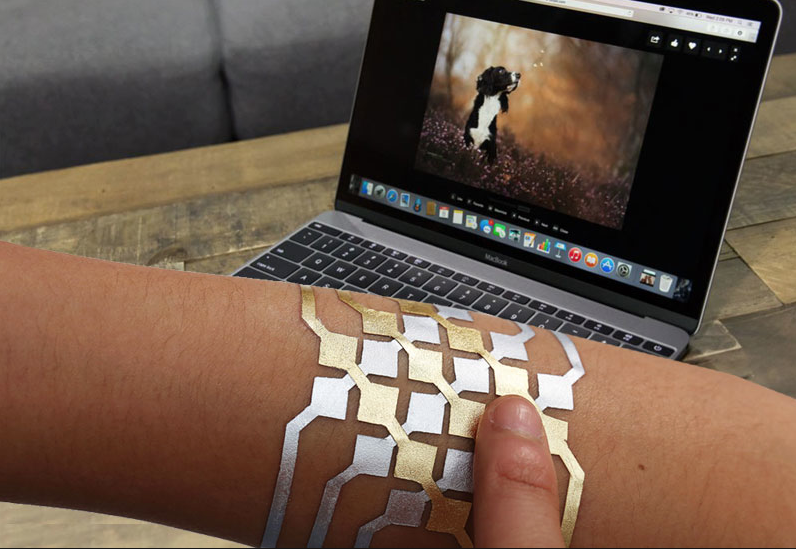 Ku klávesniciam, myšiam a touchpadom pribudnú múdre tetovania. Možno ním vyčariť touchpad, klávesnicu alebo jednoduchú vstupnú perifériu na ktorejkoľvek časti tela. Kým na prvý pohľad sa zdá, že ste sa vyzdobili nezvyčajným šperkom, v skutočnosti ide o moderné technologické zariadenie.