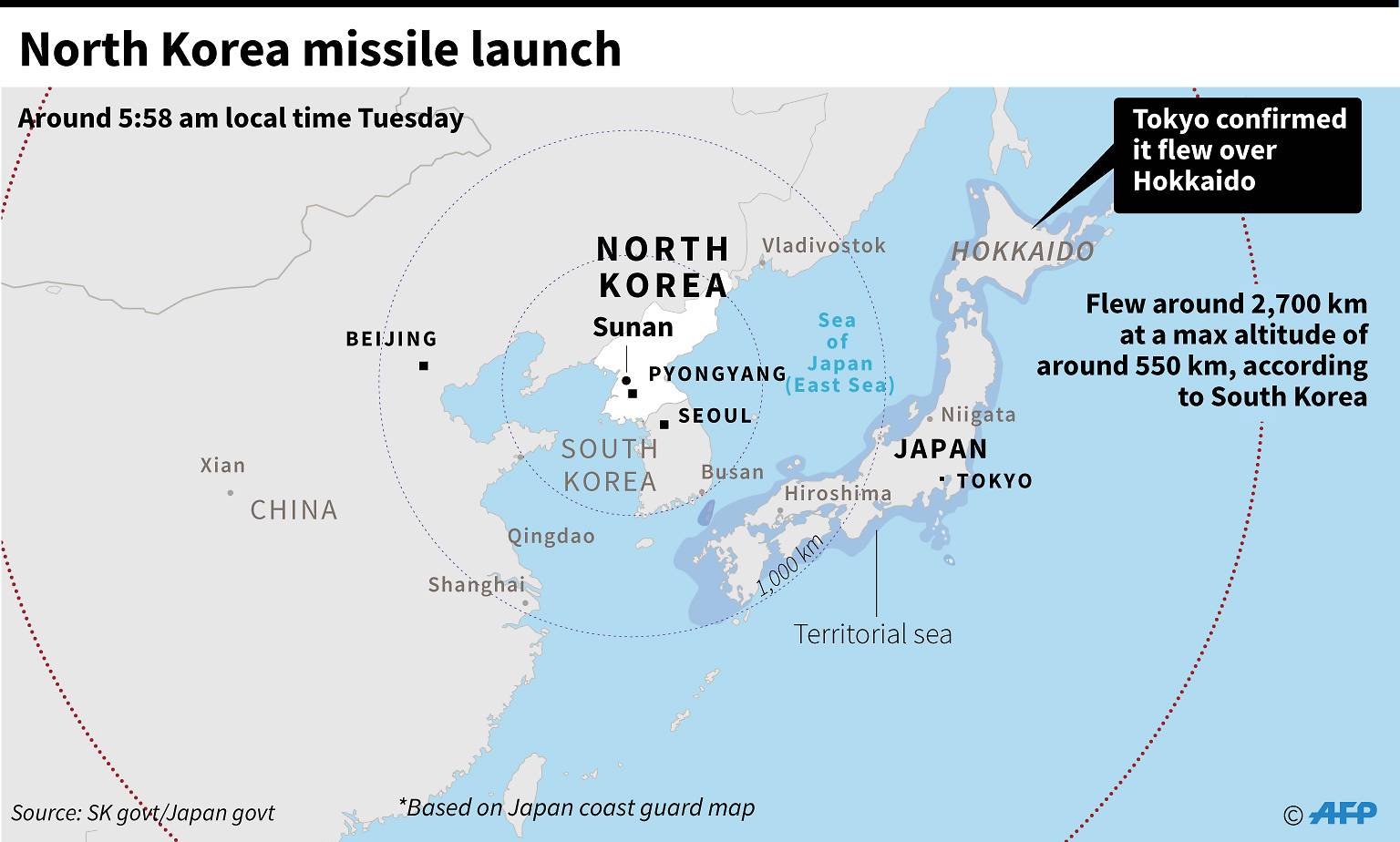 Tajomník japonskej vlády Jošihide Suga uviedol, že vyhlásením medializovaným prostredníctvom tlačovej služby KĽDR sa „výrazne eskaluje napätie v regióne“. Reagoval tak na vyhrážku severokórejskej organizácie Kórejský ázijsko-tichomorský mierový výbor, ktorá sa týmto spôsobom ohradila voči úlohe USA i Japonska pri presadzovaní prísnejších medzinárodných sankcií voči Severnej Kórei.