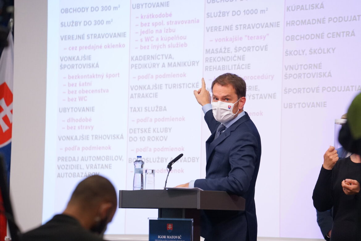 Premiér Matovič ďalej informoval, že sa otvárajú obchody a služby bez obmedzenia rozlohy, vonkajšie terasy verejného stravovania, rehabilitačné služby, múzeá, galérie, knižnice a výstavné siene. Zároveň zdôraznil, že povinnosťou zostáva dezinfekcia rúk, dodržiavanie 25 štvorcových metrov na zákazníka, ako aj dodržiavanie dvojmetrových odstupov.