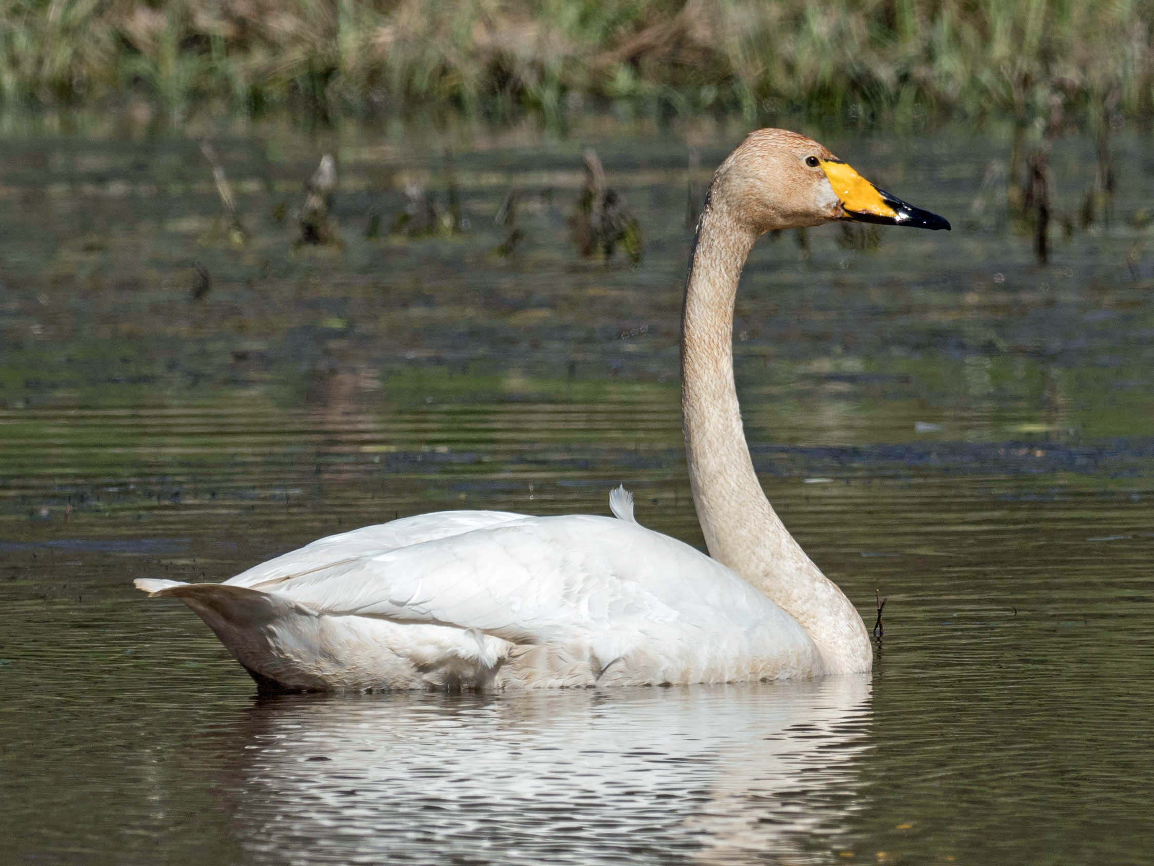 Ako sa ďalej uvádza v tlačovej správe, hniezdenie je zatiaľ úspešné, v týchto dňoch vodia rodičia dve mláďatá. Zoznam u nás hniezdiacich vtákov sa tak rozrástol na 228 druhov. Labuť spevavá je veľkosťou takmer zhodná s našou početnejšou labuťou veľkou. Typický je žltý koreň zobáka s čiernou špičkou.