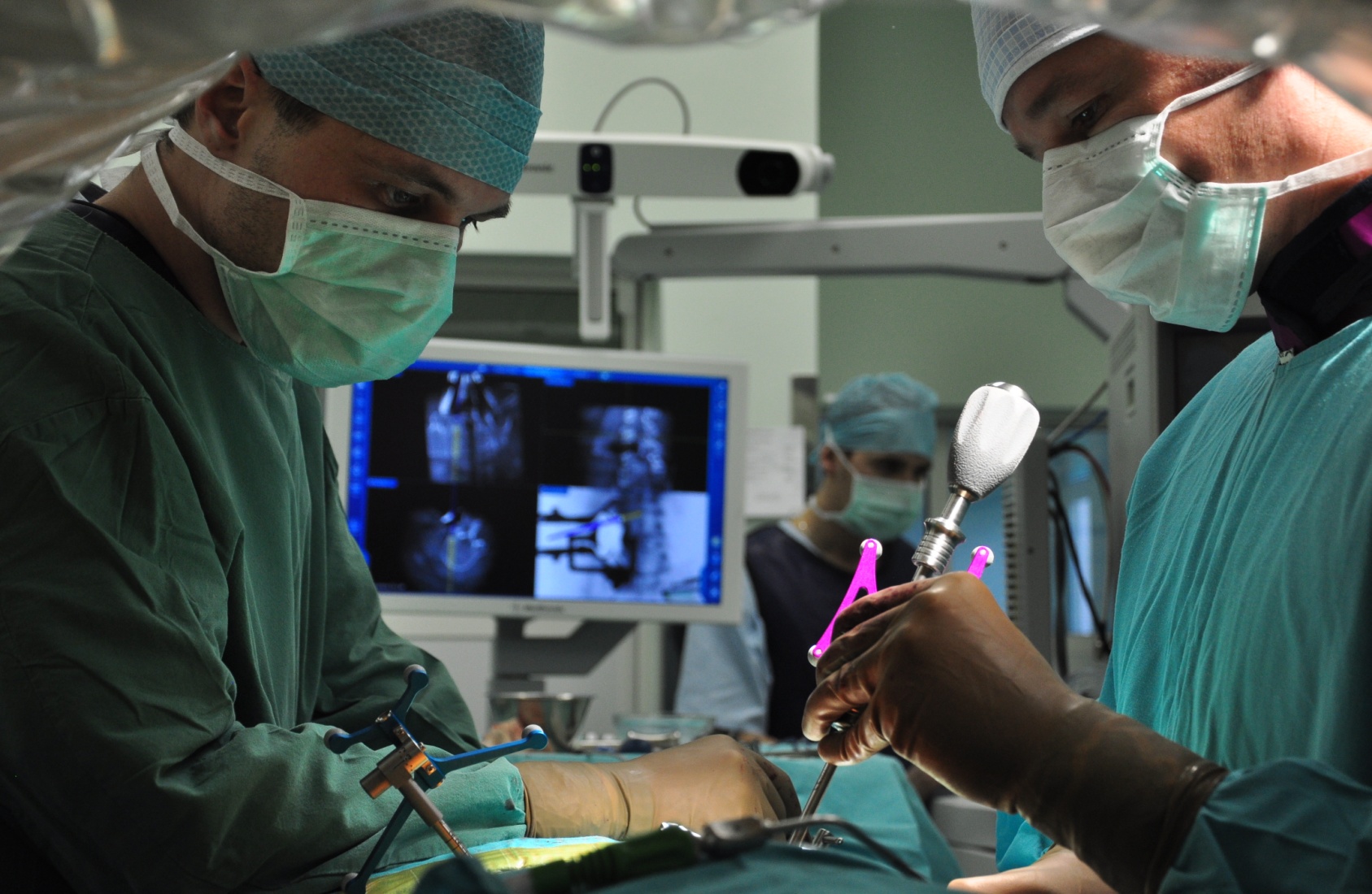 Telo pacienta „nabodnú“ v niekoľkých malých prístupových bodoch. Vnútri sa dokážu pohybovať s istotou a presnosťou, hoci do operačného poľa priamo nevidia. Pri takom zložitom a citlivom telesnom aparáte, akým je chrbtica, je to až neuveriteľné.