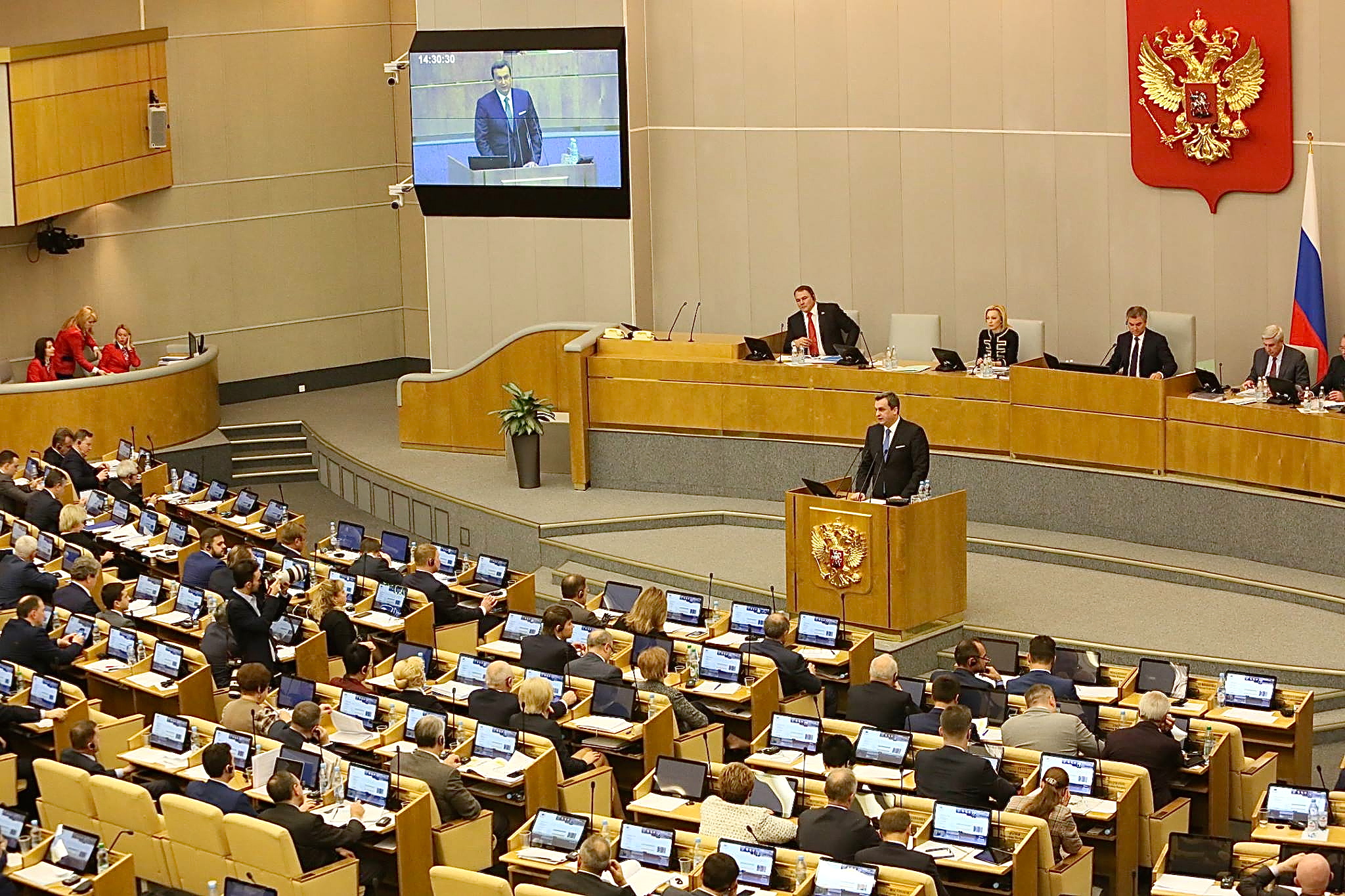 Veľkú pozornosť venovali ruské denníky vystúpeniu predsedu Národnej rady SR v Štátnej dume – dolnej komore parlamentu. Čitateľom pripomínajú, že to bol historicky prvý prejav slovenského politika v ruskom zákonodarnom zbore a len druhé vystúpenie zahraničného štátnika v tomto roku v pléne Štátnej dumy. Spravodajská agentúra Rossija segodnja zdôrazňuje z prejavu Andreja Danka myšlienku, že slovenský národ môže byť mostom komunikácie medzi Európou a Ruskom.