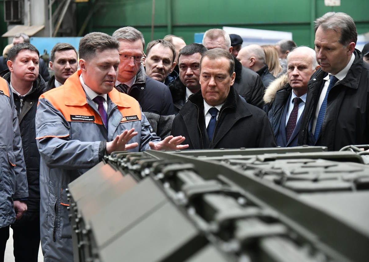 „Vieme, že náš protivník v zahraničí žobre o lietadlá, rakety, tanky. Ako by sme mali reagovať? Je jasné, že v tomto prípade je pre nás prirodzené zvýšiť výrobu rôznych druhov zbraní a vojenskej techniky vrátane moderných tankov,“ hovorí Medvedev vo viedozázname zverejnenom na jeho účte na sociálnej sieti. Podľa neho by malo ísť o tisíce nových a modernizovaných typov tankov.