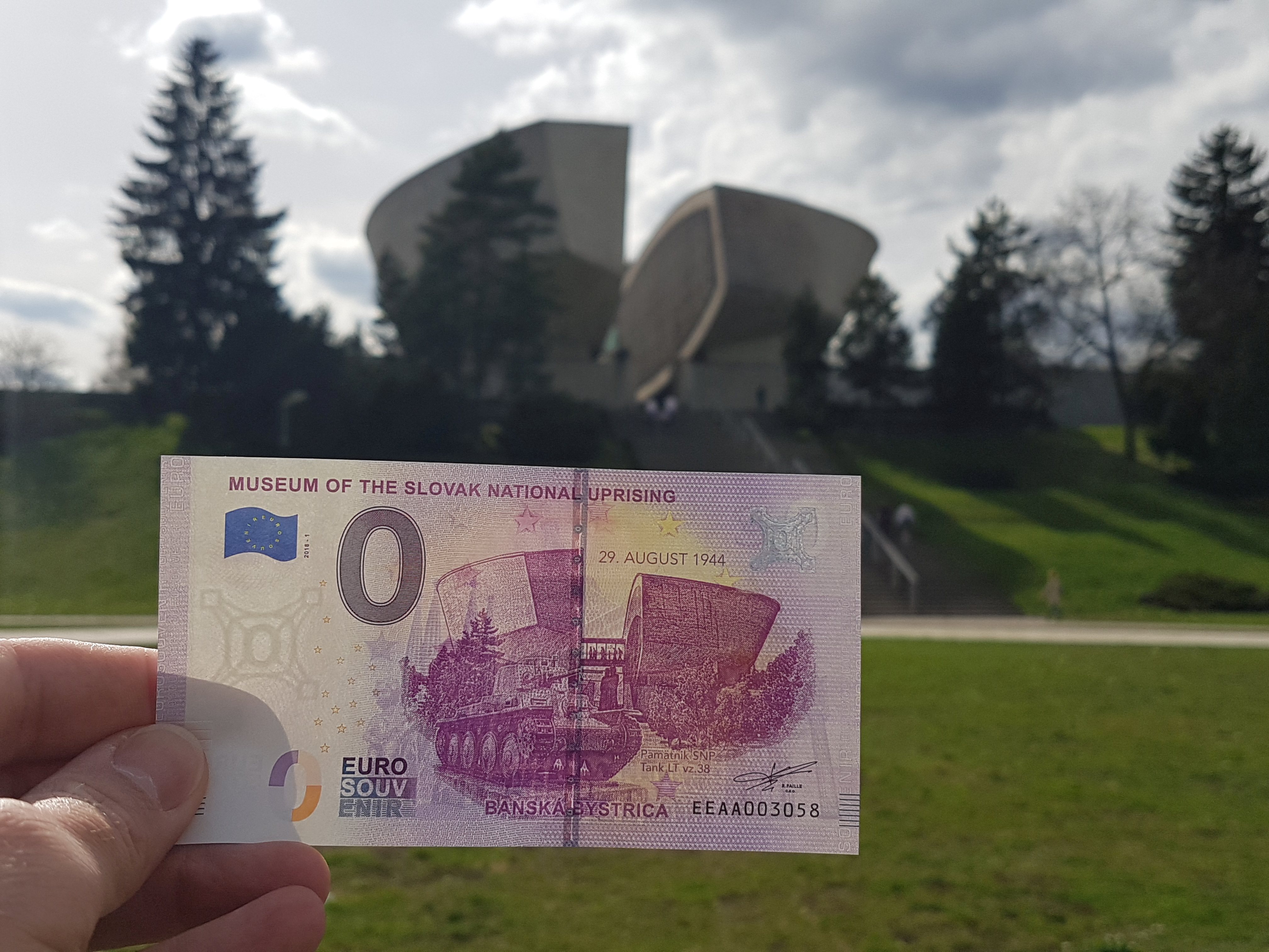 Nový zberateľský fenomén 0 Euro Souvenir bankovky učaroval celej Európe. Od roku 2015 sa z Francúzska rozšíril do ďalších krajín starého kontinentu a najnovšie preniká aj na Slovensko – po Eiffelovej veži, Vatikáne či Brandenburskej bráne sa na rad dostáva Pamätník SNP. Práve dominanta Banskej Bystrice a tank česko-slovenskej produkcie s označením LT vz. 38 budú ako prvé zobrazené na našich špeciálnych bankovkách v hodnote 0 eur. Ide o suvenír alebo zberateľský kúsok určený turistom či nadšencom z oblasti numizmatiky.