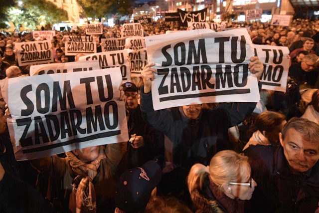 V piatok sa v Bratislave konal ďalší protest Za slušné Slovensko. Prejavy na Námestí SNP počúvali tisícky zúčastnených, pričom občasne skandovali „Hanba“, „Odstúpiť“ alebo napríklad „Som tu zadarmo“. Z tribúny niekoľkokrát odznelo ubezpečenie, že zhromaždenia nikdy nefinancoval George Soros a že nijakí ich účastníci ani organizátori nikdy nedostávali nijaké peniaze.