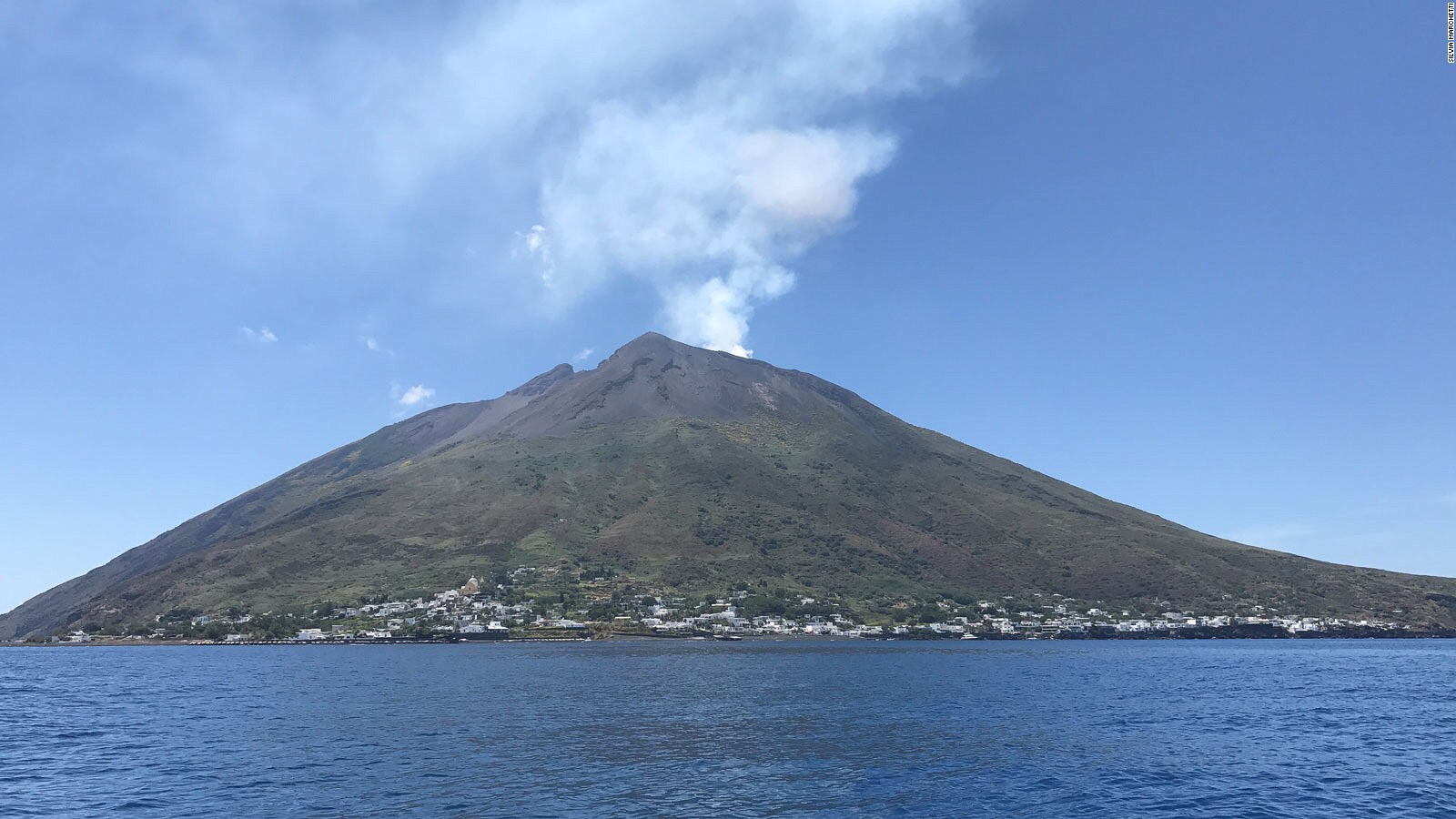 Na ostrove sa nachádzajú dve osady, v ktorých žije už len približne 500 obyvateľov. Podľa hasičov spôsobili kusy horniny na niekoľkých miestach ostrovapožiar, domy však ohrozené nie sú. Hasiči dopravujú na ostrov posily a oheň hasia aj z lietadla zo vzduchu. Niektorí vystrašení turisti zo strachu z požiarov naskákali do mora. Pobrežná stráž zároveň pripravuje evakuáciu tých, ktorí o ňu budú mať záujem.