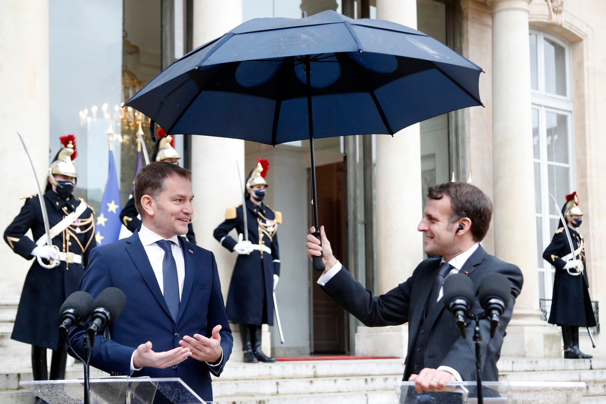 Francúzsky prezident vyhlásil, že vzťahy Francúzska a SR sú založené na rovnakých hodnotách, opierajúcich sa o zásady právneho štátu a slobody tlače. Ocenil nasadenie, s akým sa Matovič pustil do reformy a očisty justície a do boja proti korupcii i zneužívaniu prostriedkov EÚ.