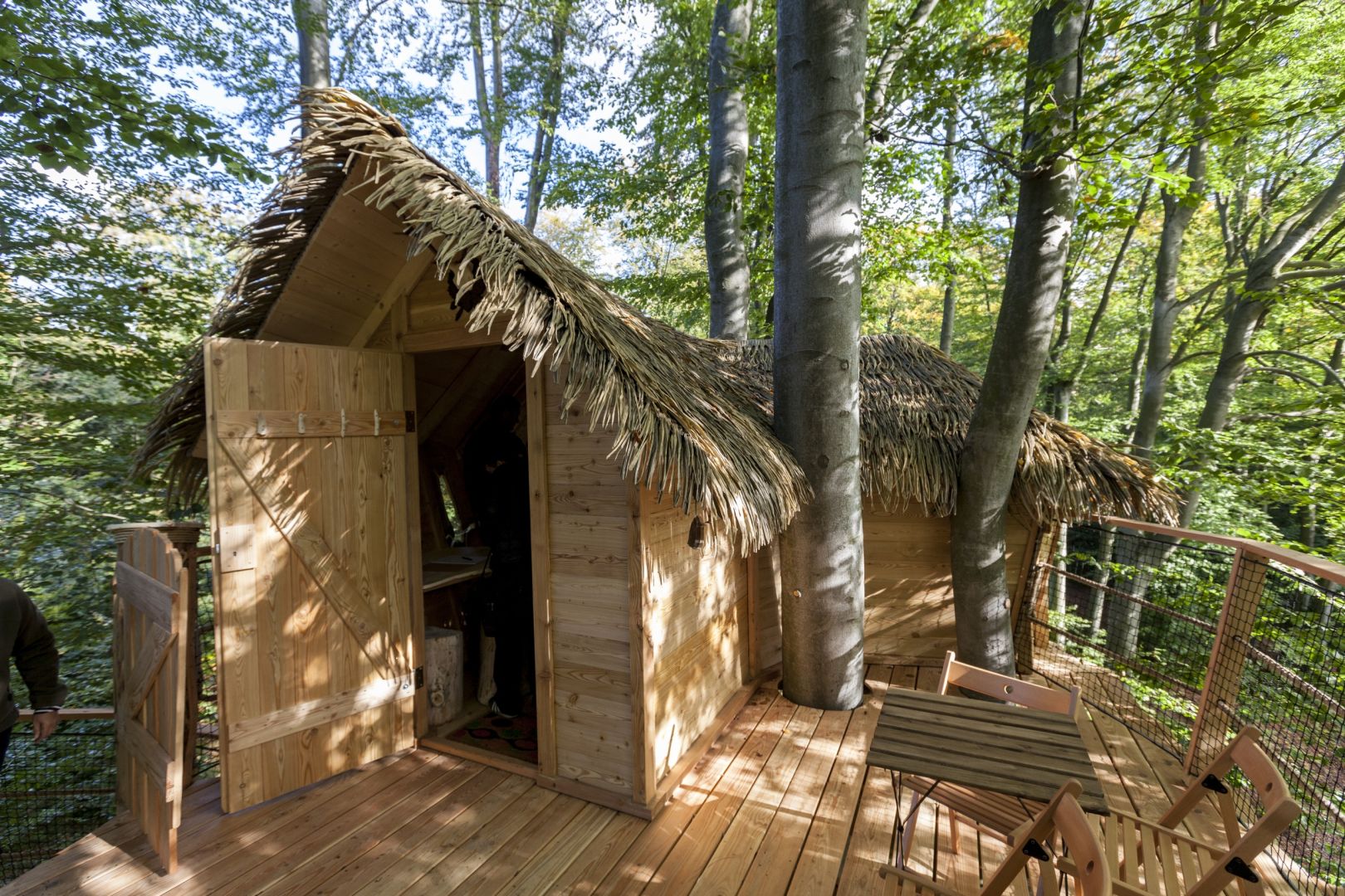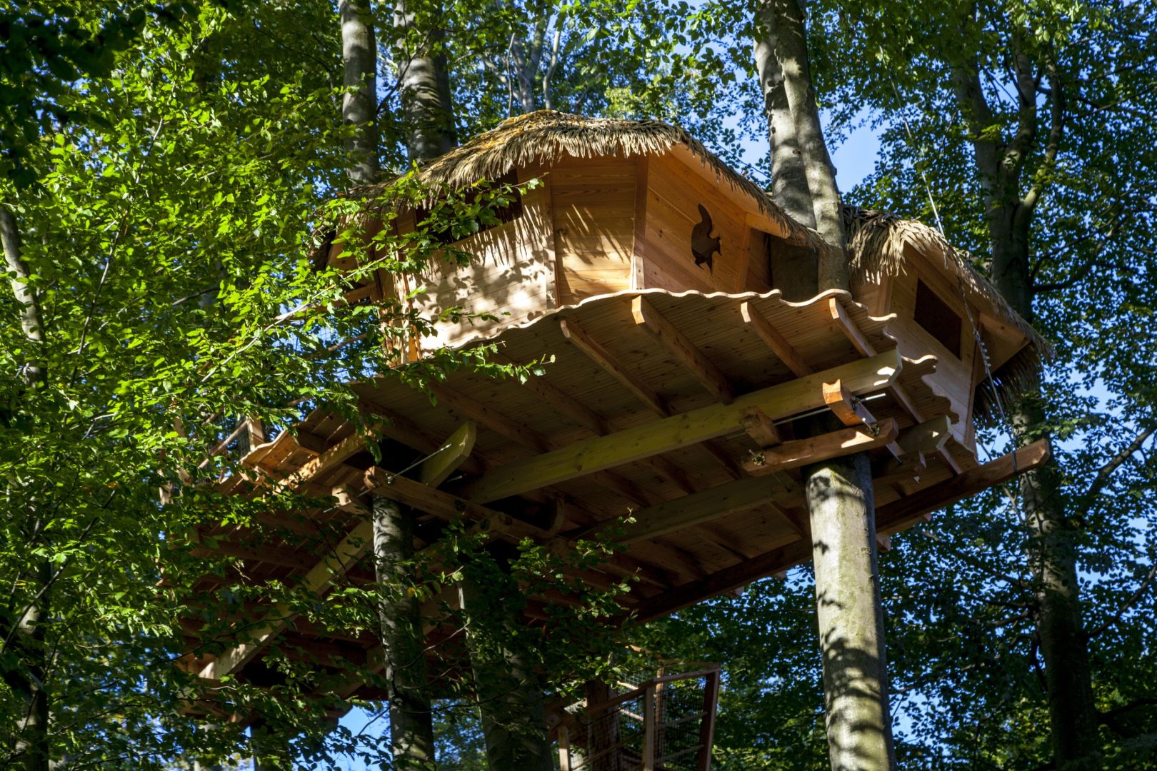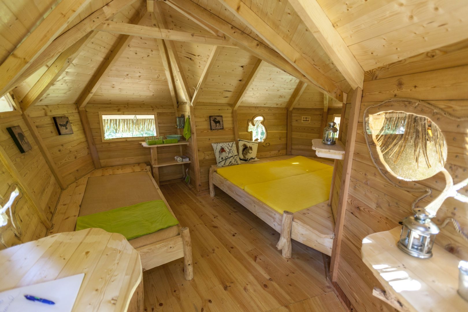 Neveľká chalúpka vo výške 6 metrov na zemou pripomína jednoizbový dom. Dostať sa do nej možno točitým schodiskom. Na rozlohe 26 metrov štvorcových sa rozprestiera jedna izba s vonkajšou terasou. Tá je zabezpečená zábradlím aj ochrannou sieťou.