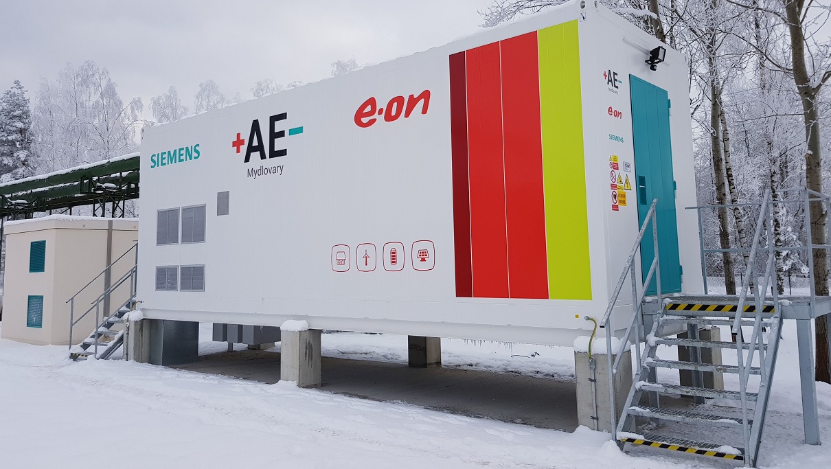Energetická spoločnosť E.ON spustila v českých Mydlovaroch skúšobnú prevádzku batériového systému na ukladanie energie s kapacitou 1,75 megawatthodín. V budúcnosti by mohlo slúžiť aj ako tzv. cloudové úložisko solárnej energie, ktoré by mohli využívať aj domácnosti.